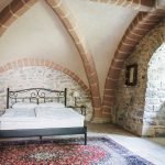 Das dritte Doppelzimmer befindet sich ebenfalls im Zwischengeschoss und ist über eine zwischen idyllischen Steinmauern liegende Außentreppe erreichbar.