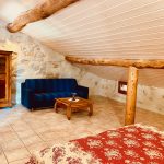 Die separate Ferienwohnung unter dem Dach der Burg kann zusätzlich angemietet werden und bietet auf 180 Quadratmetern für bis zu sechs weitere Personen Platz. Der Boden in den charmanten Wohnräumen ist ebenso wie im Erdgeschoss aus handgemachtem südfranzösischen Terracotta.