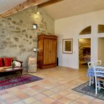 Das repräsentative Erdgeschoss mit hohen romanischen Rundbögen bietet hinter dicken Natursteinmauern eine ritterliche Atmosphäre. Böden aus handgemachtem Terracotta aus der Region unterstreichen den urigen Charme. In der unteren Einheit der ehemaligen Katharerburg, bestehend aus Erd- und Zwischengeschoss, können bis zu sechs Personen komfortabel wohnen.