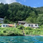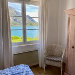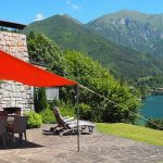 Im Wohnzimmer erwarten Sie eine gemütliche Sitzecke mit Smart-TV, ein Holzofen und ein Esstisch. Von hier aus gelangen Sie auf die großzügige Terrasse mit Sonnensegel, offenem Kamin und Gasgrill. Direkt am See gelegen, genießen Sie einen traumhaften Blick auf die Berge und den malerischen Ort Mezzolago. Gartenmöbel sind vorhanden.